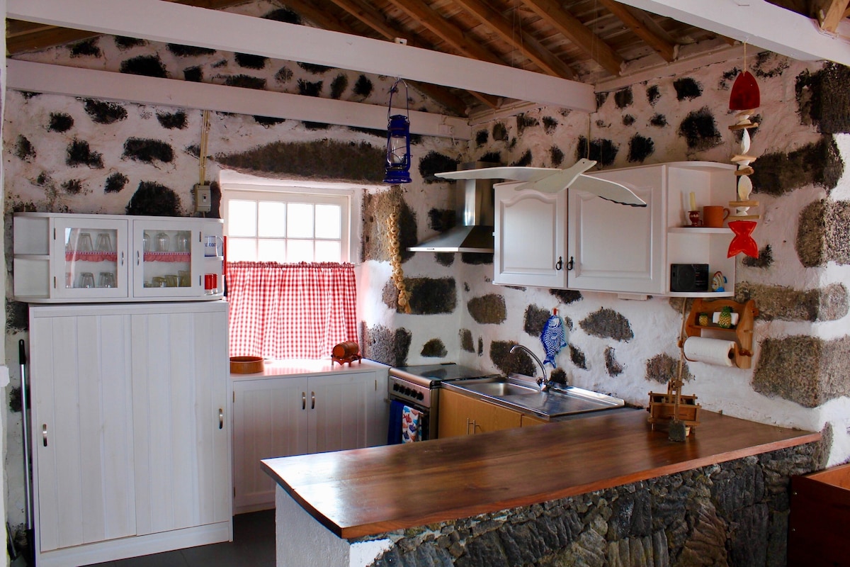 Виноградний будинок, що працює на сонячній енергії, розташований у ландшафті виноградарської культури острова Піко - об 'єкта всесвітньої спадщини ЮНЕСКО. Усього за декілька хвилин їзди від села Мадалена цей традиційний і реконструйований винний будинок має свій власний виноградник на задньому дворі. Затишне помешкання на двох осіб з спальнею, міні-кухнею, відкритою для вітальні та ванною кімнатою. Винний будинок з видом на океан, острів Фаяль та гору Піко.
