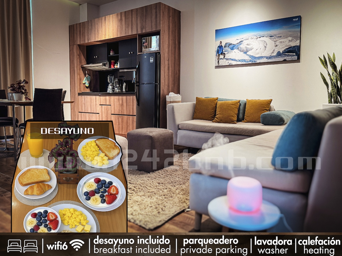 Квартира з цілодобовою охороною, чудовим розташуванням, простим цілодобовим входом, всім міні-кухнею в одному кроці, розміром Queen size, дивовижним видом, домашнім офісом, високошвидкісним Інтернетом. Квартира розташована в Edificio Plaza Toledo, прекрасному місці для краєвиду, розташування, комфортних, безпечних і доброзичливих людей; на першому поверсі є ресторани. Безкоштовна парковка на підлозі. Це місце ідеально підходить для сімей, туризму, ділових поїздок. Оснащена усім необхідним, щоб почуватися як удома, вам СПОДОБАЄТЬСЯ