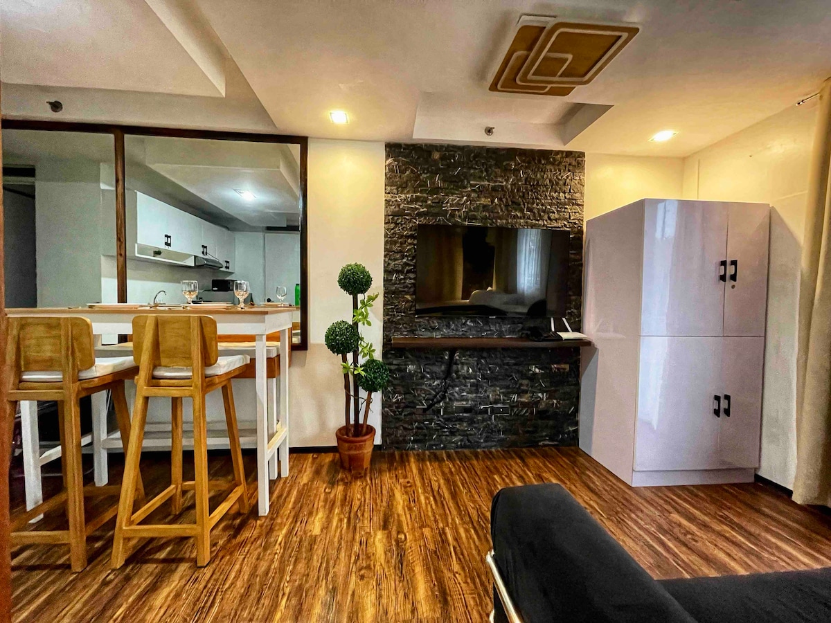 Відпочиньте від міста – не виїжджаючи з міста – за невеликі кошти. Якщо ви шукаєте затишне місце, щоб комфортно провести час зі своїми близькими, не виїжджаючи з Метро-Маніли, це ідеальне помешкання для відпочинку неподалік від дому. Виходячи за ворота, відчуйте прохолодний вітерець і насолодіться красою сосен, які створюють затишну атмосферу Тагайтая та Багіо. У помешканні є балкон, пральня, кухонне приладдя, 50-дюймовий Smart TV, ліжко розміру King size та всі необхідні зручності для повноцінного та комфортного відпочинку.