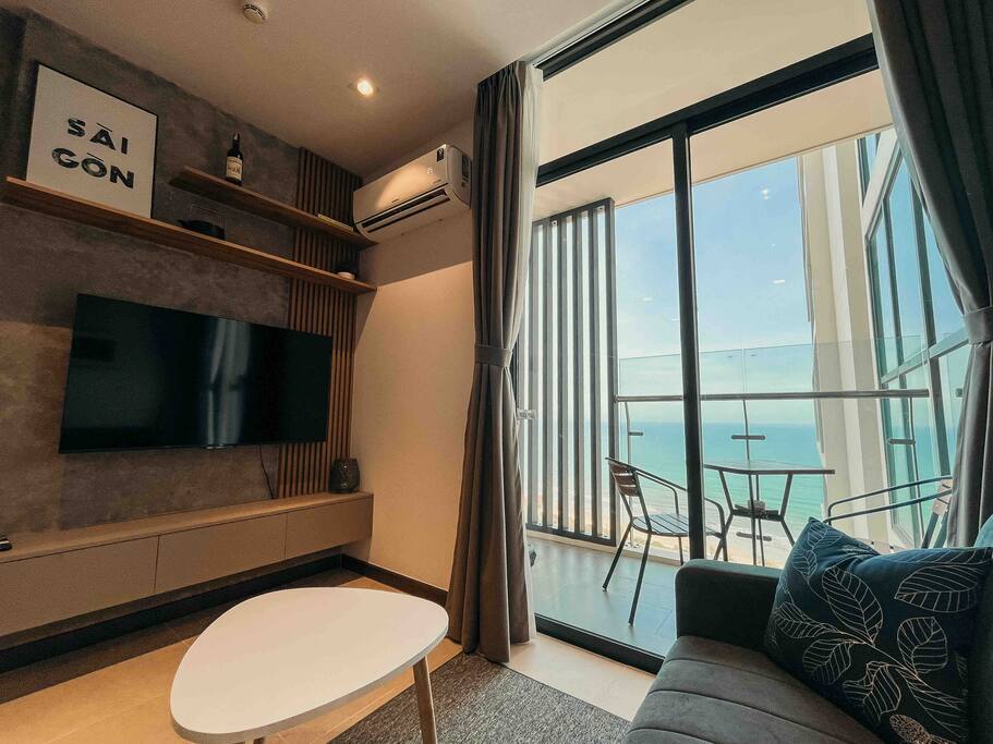 Мінімалістична, повністю мебльована квартира з 1 спальнею на 15-му поверсі з захоплюючим видом на море. Ідеально підходить для пар або сімей з однією дитиною до 5 років. Ідеальне розташування поруч із пляжем Бек (пляж Тху-Ван). Приблизний час ходьби до зручностей поблизу: - 2 хвилини до пляжу через дорогу. - В 5 хвилинах від найближчого цілодобового магазину (GS25). - 8 хвилин до найближчого супермаркету (Lotte Mart); Швидкі ліфти. Безкоштовний Netflix. У нас також є один мотоцикл, який можна взяти напрокат.