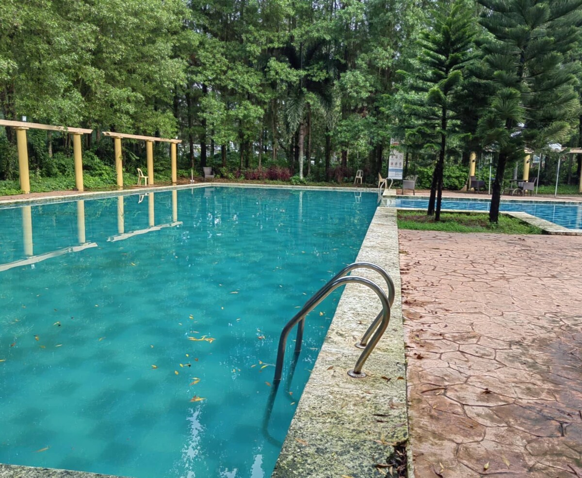 Це помешкання далеко від дому чисте, комфортне, спокійне та красиво оформлене. Вона має три спальні та дві повнорозмірні ванні кімнати. У всіх трьох спальнях є кондиціонери, а також вітальня. Кухня добре обладнана побутовою технікою та посудом. Волоконний Wi-Fi швидкий і надійний, що чудово підходить для віддаленої роботи. Він розташований в затишному районі, з цілодобовою охороною. Це від семи до восьми хвилин їзди до нового державного центру, ресторанів і торгових центрів.