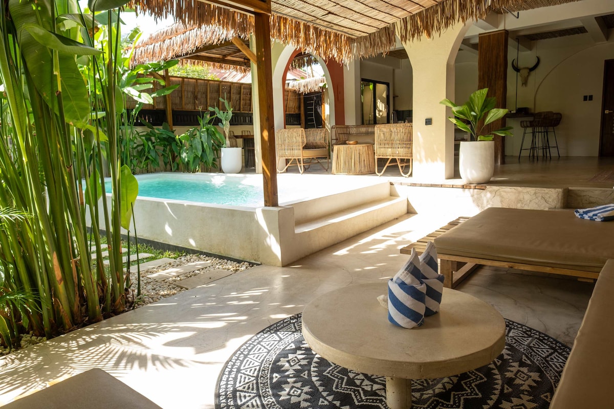 Красива вілла, що поєднує в собі сучасність і традиційний шарм, 2 спальні (ліжка queen-size), 1 невелика спальня (двоярусне ліжко), 1 ванна кімната, 1 приватний басейн і відкритий і світлий житловий простір. Дизайн поєднує сучасні елементи та місцеві матеріали для теплої та елегантної атмосфери. У будинку також є Starlink для швидкого та надійного підключення до Інтернету, а також резервна система акумулятора для забезпечення безперервного живлення в разі відключення електроенергії.