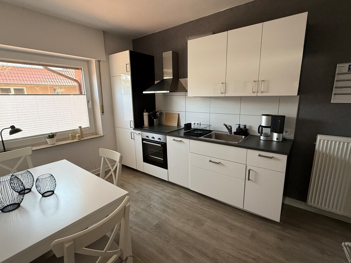 Ласкаво просимо до відремонтованої та нещодавно мебльованої квартири Rehkamp! Простора квартира на першому поверсі розташована в затишному поселенні в Нортрупі і пропонує достатньо місця для відпочинку та монтажників на площі 64 м². У квартирі є кухня, затишна вітальня з телевізором, дві спальні (одна двоспальна, одне односпальне ліжко) та сучасна ванна кімната з душем та туалетом. Для вашого комфорту ми надаємо набір рушників і свіжу постільну білизну на тиждень і для гостей.