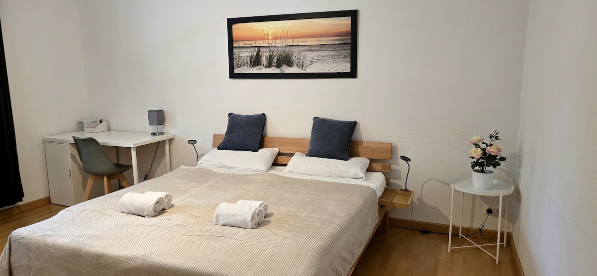 Моє помешкання підходить для пар, індивідуальних авантюристів та ділових мандрівників. Центральна і тихо розташована яскрава квартира Paterre в окремому будинку з окремим входом та окремою душовою кімнатою та кладовою - кухнею . Кімната має ліжко 140 x 200, 2 крісла та шафи. Кухня кладової для простого та швидкого харчування повністю обладнана мікрохвильовою піччю, кавоваркою, чайником, тостером, холодильником, посудом та пральною машиною. Місце для сидіння в саду меблюється