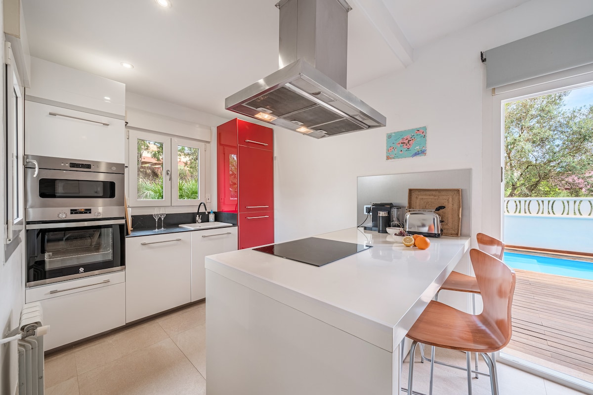 Приголомшлива мінімалістична розкішна вілла площею 600 кв. м на трьох поверхах. До послуг гостей багатофункціональна кімната з видом на басейн, проєктор, супутникове телебачення, відеоігри, дискотека та тренажерний зал. Приватний басейн (9 x 5 м) із гідромасажем та різнокольоровим освітленням, накритий із листопада по квітень. Опалення басейну доступне за запитом за додаткову плату. Басейн і тераса мають нову протиковзну плитку для додаткової безпеки. Барбекю, сад, ігрова кімната, 15 велосипедів, кондиціонер, домашня автоматизація та зарядний пристрій для електромобіля.
