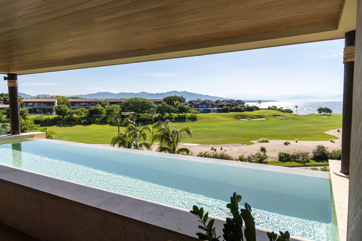 Відпочиньте і розслабтеся в цьому спокійному, стильному помешканні або скористайтеся шикарними місцями для серфінгу та гольфом. Всього в декількох хвилинах ходьби від улюбленого місця для серфінгу місцевих жителів можна дістатися пішки до магазину Mictlan Surf Shop. 5 хвилин їзди до міста Пунта-де-Міта, де ви знайдете вишукані ресторани та бутіки. Розташований на першому поверсі з дивовижним видом на басейни, джунглі та океан з легким доступом до ресторанів, дитячого клубу, кінотеатру, бізнес-центру, спортивного бару, пляжного клубу, спа-салону та оазису на даху.