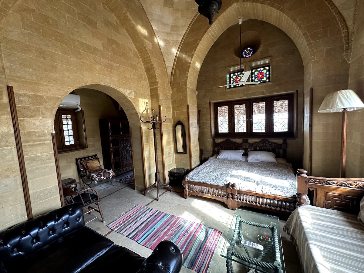 Beit Ain al Haya - це старий традиційний будинок із високими стелями, куполами та арками. З даху відкривається вид на озеро Куарун і пустелю. Велика квартира цього будинку має дивовижний величезний дах і вихід до саду. У спальні є ліжко 1,60 м, додатковий диван і камін. На величезній стійці реєстрації 2 додаткові особи можуть спати на зручних диванах. Будинок обладнаний Wi-Fi і робочими столами, фургонами та обігрівачем. Парковка всередині помешкання.
