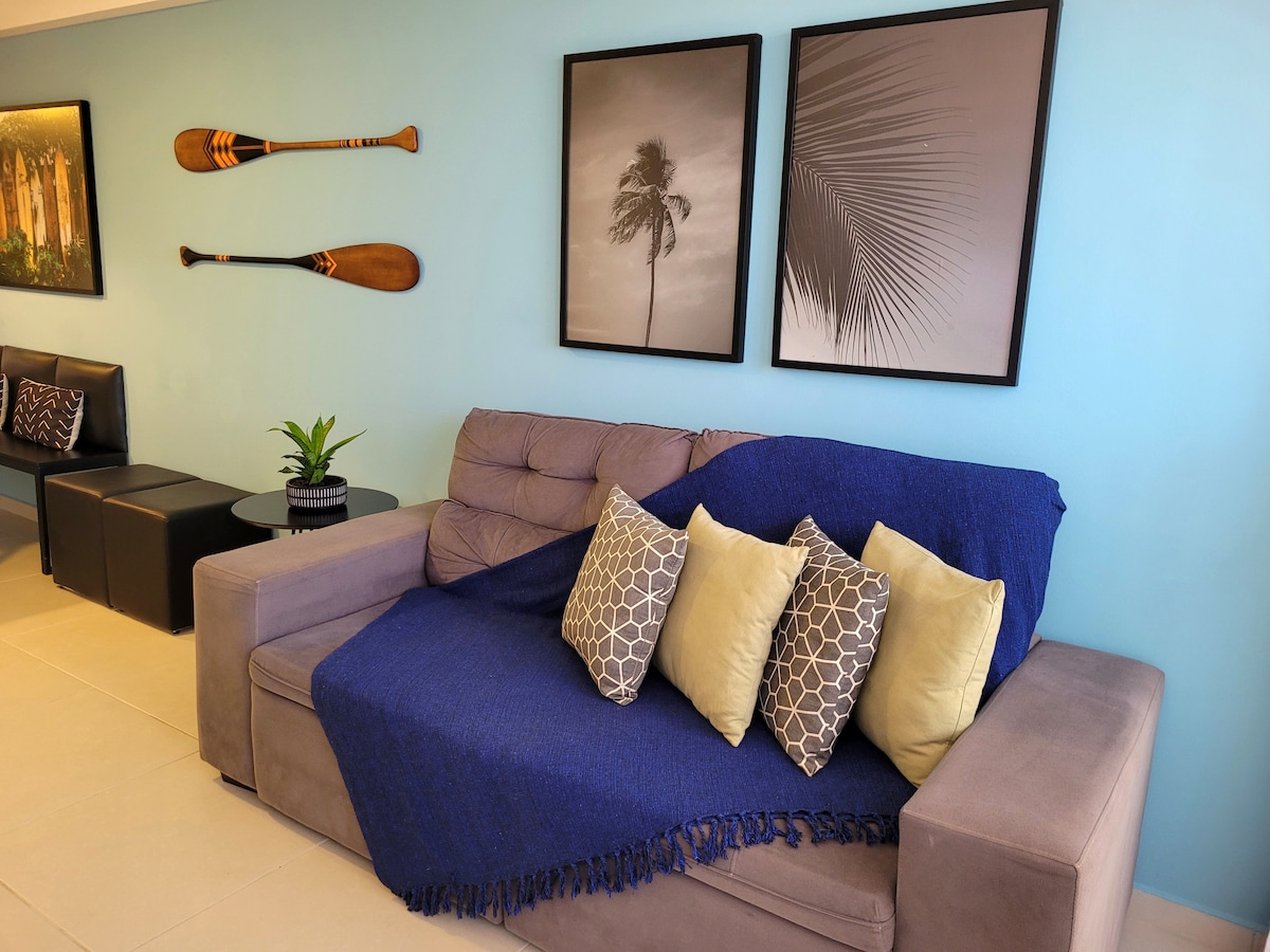 The building faces the beach (foot on the sand), has swimming pools, barbecue area (and barbecue grills), gym, Spa (sauna and whirlpool), 2 games rooms (traditional and children's), toy library, party and gourmet rooms(not included), reading room , ladies lounge ( like a beauty salon) and others. 67.58m² apartment with dining/living room, balcony, two bedrooms(one suite), a guest bathroom, kitchen and laundry area, Wi-Fi, TV (Smart), appliances, air conditioning in the bedrooms, garage.