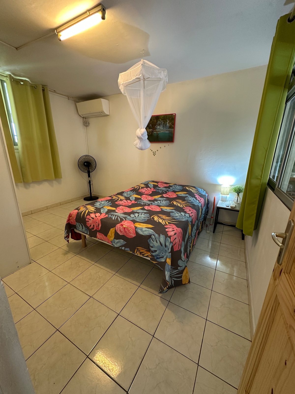 Подалі від будь-якої шуму та суєти в зеленій обстановці ми вітаємо вас у яскравому та повністю обладнаному коконі. На період, пов 'язаний із санітарним контекстом, ми встановили процедуру, яка дозволяє вам реєструвати прибуття та безпечно з високим рівнем дезінфекції помешкання. У сільській місцевості ви зможете насолодитися безтурботністю садів Іди з її тропічними деревами. Це помешкання з окремим входом розташоване на першому поверсі відремонтованої традиційної вілли.