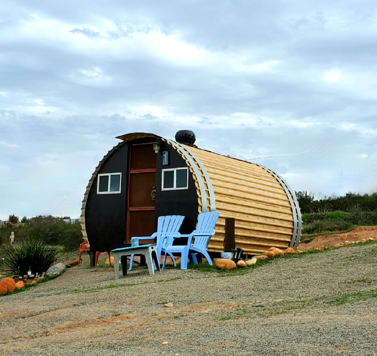 Це ваш шанс провести ніч в унікальній споруді, щоб поглибити відвідування виноробних Ель-Валле. Це металева капсула, намальована деревиною у формі бочки для вина. У ньому є вікно трохи вище ліжка, щоб ви могли спостерігати за зірками вночі. Дуже безпечний район і недалеко від незліченних важливих місць. - Якщо він недоступний, ви можете шукати наші бочки №2, №3 або №4. Відвідайте наше нове помешкання: La Bottle із ГІГАНТСЬКОГО вина. Це УНІКАЛЬНЕ ПОМЕШКАННЯ!