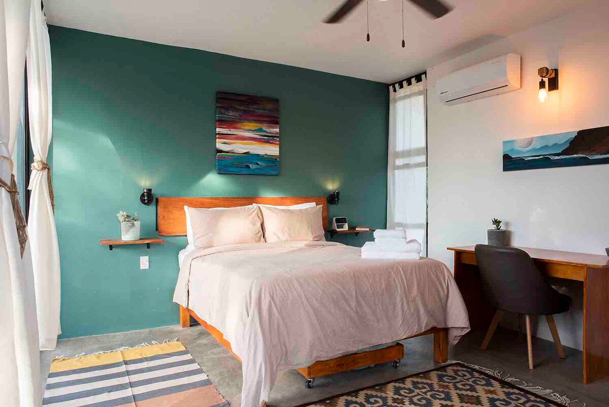Відпочиньте в цьому стильному сучасному будинку Casita всього в декількох хвилинах ходьби від пляжу, розташованому в центрі між двома найкращими місцями для серфінгу в регіоні. Ця студія для перебування з домашніми тваринами та сім 'єю була завершена у 2022 році з комфортними та стильними зручностями, включаючи високошвидкісний інтернет, кондиціонер, матрац з ефектом пам' яті (+дитяче ліжко), Smart TV, міні-кухню з холодильником і плитою, огороджений та озеленений двір для ваших пухнастих друзів. Розташована на тихому тупику з новим рестораном і денним спа-салоном за кілька кроків.