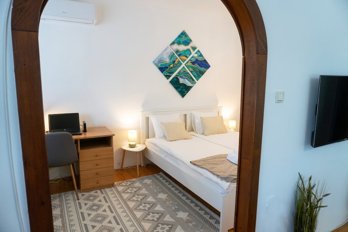 Відпочиньте й розслабтеся в цьому новому, ідеально обладнаному, стильному помешканні та просторому саду! Sparkling Apartment – це спокійний, екологічно чистий і стримано оформлений будинок, звідки можна дістатися до центру Балатонфюреда та берега озера Балатон за кілька хвилин. Ідеально підходить для любителів піших походів і велосипедистів. Сходи до галереї круті, тому приходьте з дітьми, які ще не вміють безпечно підніматися сходами. Я надаю подорожнє ліжко, дитячу ванну, пеленальний мат і високий стілець для немовлят.