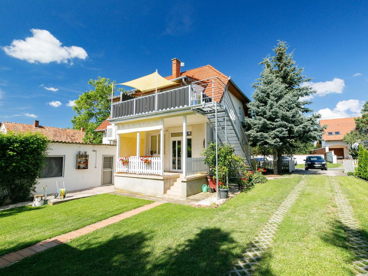 У затишній, добре обладнаній квартирі на верхньому поверсі все було для спокійного, приємного відпочинку. У дворі є шезлонги та критий майданчик з грилем для відпочинку на свіжому повітрі. Ми створили міні-ігровий куточок для дітей з гойдалкою та надувним басейном. Озеро Балатон знаходиться в 10 хвилинах ходьби, магазин та ресторани - в декількох сотнях метрів. Як власник, я живу на першому поверсі, повністю окремо від гостей, але якщо гостям щось потрібно, я з радістю буду до їхньої розпорядження.
