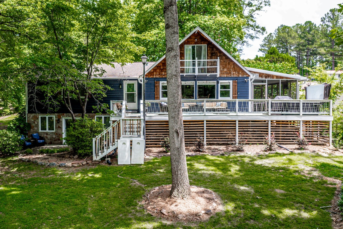 Чудовий будинок для пар, родини та друзів! Відкиньтеся назад і насолоджуйтеся фантастичним видом на захід сонця, приймаючи гарячу ванну. Зверніть увагу: компанія Georgia Power ініціювала зниження рівня озера на період із 25 жовтня по 1 грудня. У ці дати не можна буде займатися риболовлею та каное. Помешкання чудове, і ним досі можна насолоджуватися. Насолоджуйтеся багаттям і гідромасажною ванною в нашому тихому прихованому котеджі.
