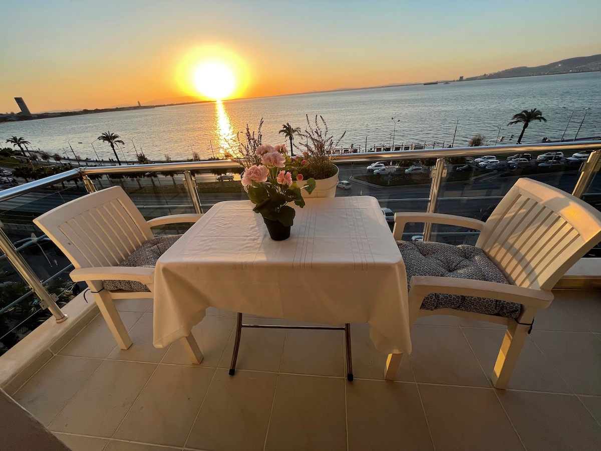 In Göztepe, İzmir s best place for staying, a spectacular apartment with a beautiful sea view. 3 bedroom with a king size bed, 3 air conditioner, natural gas heating, kitchen with everything you need, special parking place and an unique İzmir Bay view and a lovely sunset view. Our building has elevator so you don't need to climb any stairs with your heavy luggages. Mythic Travel Our parking place is not ok for vans. we can't allow bigger than SUV