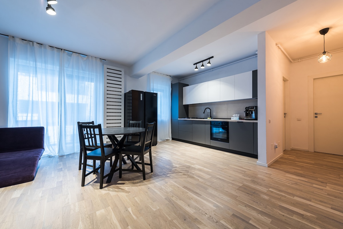 Urban Deluxe | Igloo Jacuzzi Terrace in One Verdi Park – сучасні розкішні апартаменти в Бухаресті з приватним садом, джакузі з підігрівом / гідромасажною ванною в затишному купольному іглу, приватною інфрачервоною сауною та баром на відкритій терасі з винним холодильником і зонами відпочинку. Світлий мінімалістичний інтер'єр із комфортабельним ліжком, якісним диваном-ліжком, швидкісним Wi-Fi, Smart TV, а також підігрівом і охолодженням підлоги для цілорічного комфорту. Ідеально підходить для романтичного відпочинку, коротких поїздок у місто або стильного перебування в Бухаресті під час роботи.