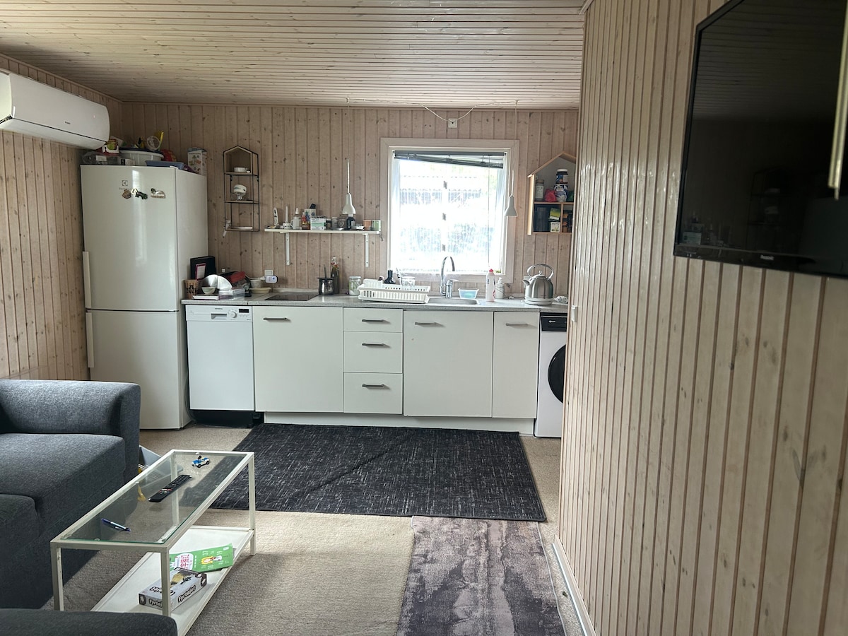 Her har du alt hvad du skal bruge. Alle hårde hvide vare findes. Den udlejes primært til folk der søger en overnatning eller 2 i Københavns omegn. Der er varme, varmt vand og El. I kan selv vælge at lave mad ( bare ikke svinekød ), ellers ligger al slags butikker 10 minutters gågang fra huset. Sengene til voksne er sovesofaer. Prisen er inkluderet forbrug. Huset er godt isoleret, og aircondition er hel ny. Fri parkering. Ønsker ikke familier. Da den primært er egnet til 1 eller 2 personer.