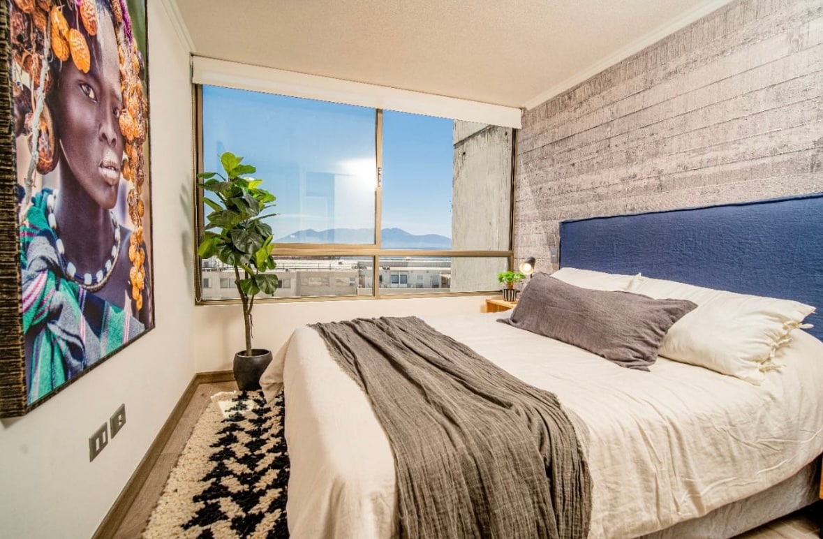 Departamento de 1D y 1B, amoblado y equipado en Antofagasta. Ubicado en condominio a 2 calles de terminal de buses y en avenida costanera con excelente conexión al aeropuerto y centro comercial. Tiene accesos controlados y amenities en espacios comunes , tales como gimnasio gratuito previa solicitud, aunque sujeto a disponibilidad. Estacionamiento disponible. Cuenta con Smart TV y wifi libre. Cuenta con señal de televisión abierta.