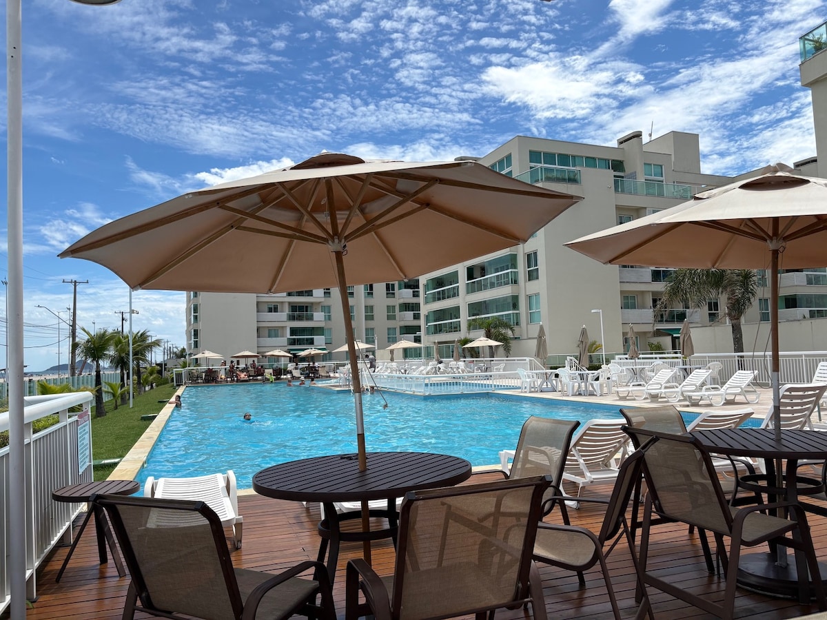 CARNAVAL PACOTE ESPECIAL. Consulte oferta antes de fazer a reserva. Apto com vista incrível em condomínio clube. Finamente decorado e atual. 3 TVS. 3 AC. Chuveiros à gás. Forno elétrico, micro-ondas, lava roupas, lava louças. Cozinha completa integrada. Tudo novo. Sala com sacada integrada frente mar. Suíte de frente para o mar. Qto com camas de solteiro frente mar. Qto casal com vista lateral mar. Condomínio clube com piscina e bar molhado (verão). Quadras esportivas. Salão de jogos.