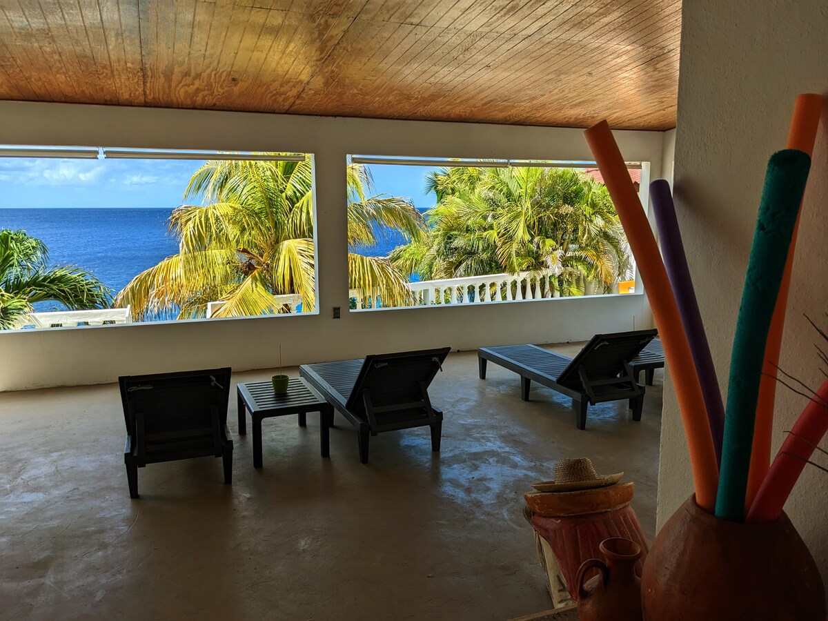 Take in a beautiful sunset, snorkel with a sea turtle or dive directly from our beach. Our condo sits 20 feet above sea level, located 15 feet from the waters edge. Equipped with free WiFi, Netflix and all the comforts you'll need. Recently enlarged first floor porch provides an incredible view. On the second floor porch, a shade sail allows for a spectacular view of the ocean and beach while providing a combination of sun or shade.