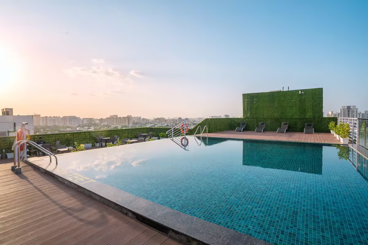 Luxe Heaven Heaven Heights 12th Patio 2 виділяється приватним 2-місним джакузі, приголомшливим висотним видом на місто та сучасною архітектурою. Велике настінне дзеркало додає елегантності, а ванна кімната, схожа на спа, забезпечує розкіш. Гості можуть користуватися басейном, тренажерним залом, високошвидкісним Wi-Fi, телевізором із великим екраном, а також цілодобовою охороною та парковкою. Повністю обладнана кухня полегшує домашню їжу. Розташований у найкращому районі Гургаона, він дуже безпечний для жінок і пропонує ексклюзивний приватний доступ!