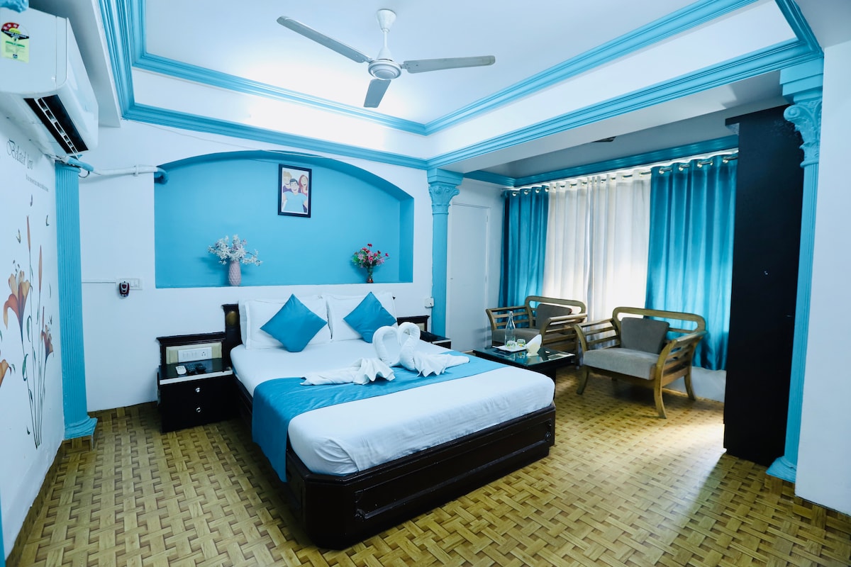 Це стильне помешкання з 2 спальнями, повністю обладнаною кухнею, високошвидкісним Wi-Fi, 43-дюймовим смарт-телевізором ідеально підходить для групових подорожей, сімейного відпочинку, зустрічей двох пар і ділових поїздок. Помешкання вміщує мінімум 4 гостей. Якщо бронювання здійснюється для 2 гостей, доступ обмежується спальнею, яка прилягає до вітальні. Друга спальня залишається закритою. Щоб використовувати обидві спальні, стягується номінальна додаткова плата в розмірі 1599 індійських рупій за ніч для бронювань на 2 осіб, яку можна сплатити через режим оплати Airbnb тут.