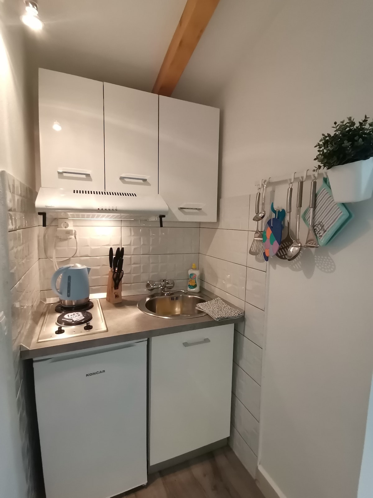 Ви маєте дивовижний вид з цієї затишної, щойно відремонтованої студії, на верхівці старовинного кам 'яного будинку. Ви можете спостерігати, як старе місто Корчула прокидається світлом світанку, а яхти заходять у порт на заході сонця. Тут ви близькі до всього, одночасно перебуваючи в затишному районі. Ясне блакитне море знаходиться прямо за дверима, чудово підходить для купання прямо з набережної. Ми вітаємо вас у цьому добре обладнаному помешканні з усім необхідним для комфортного відпочинку.