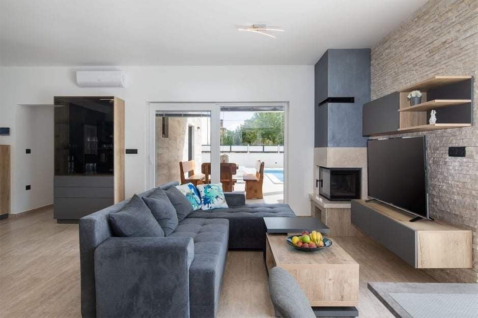 Uživajte na mirnoj, usamljenoj lokaciji 600 m od mora, masažnim bazenom i saunom. Kuća se sastoji od 3 spavaće sobe od kojih svaka ima svoju kupaonicu. Veliki otvoreni dnevni boravak i veliku kuhinju, gostima je na raspolaganju plinski roštilj te dvije terase na kojima se mogu relaksirati. Bazen je grijani.