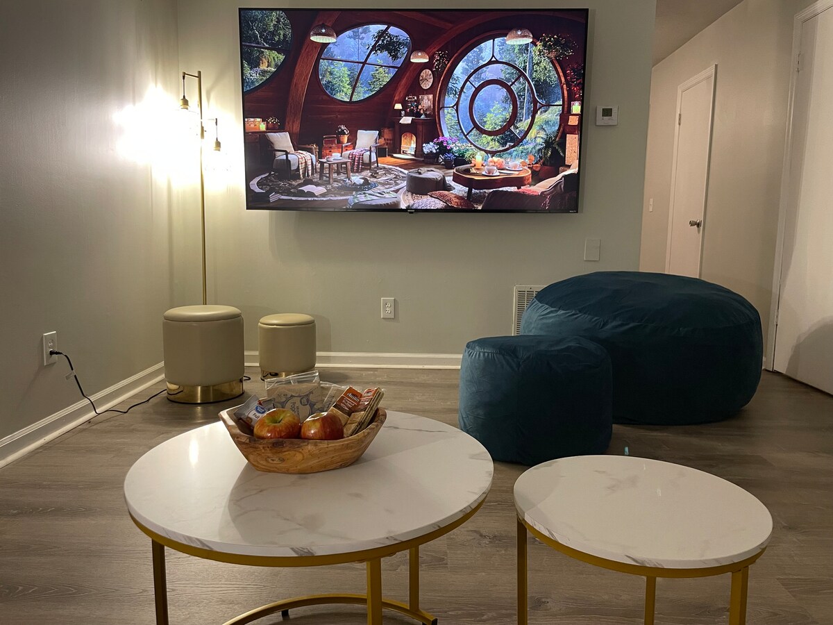 This is a gorgeous and luxurious two-story townhome with: - 2 king beds: 1 firm, 1 plush (each in its own bedroom) - 1 sofa bed & 1 air mattress - 1 full bath and 1 half bath - 86" 4K TV w/ Roku TV for the living room - Also a 55" TV w/ Roku in each bedroom - Firepit - Grill - 2 desks - 4 clean bathrobes - Fresh linens - Cheerful and comfortable furnishings It's beside our 2nd (nearly identical) unit: Bright Haven #640. If you need sleeping space for more people, you may wish to rent both.