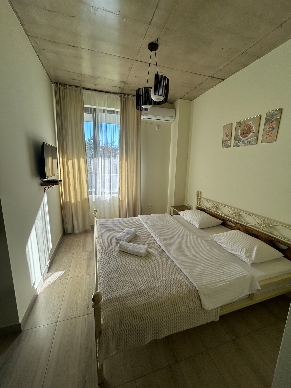✨ Простора квартира площею 120 кв. м для 8 гостей – ідеально підходить для сімей і груп. 3 спальні, велика вітальня з диваном-ліжком, 2 ванні кімнати, швидкий Wi-Fi та самостійна реєстрація заїзду. Повністю обладнана кухня, телевізор, тихе та комфортне перебування в Кутаїсі. Чудове розташування, оточене магазинами, аптеками та ресторанами для максимальної зручності. Автобусна зупинка прямо перед будівлею пропонує швидке сполучення з центром міста та ✈️ аеропортом (приблизно 20 хвилин). Розташована 📍 на 2-му поверсі🛗 Ліфта немає.
