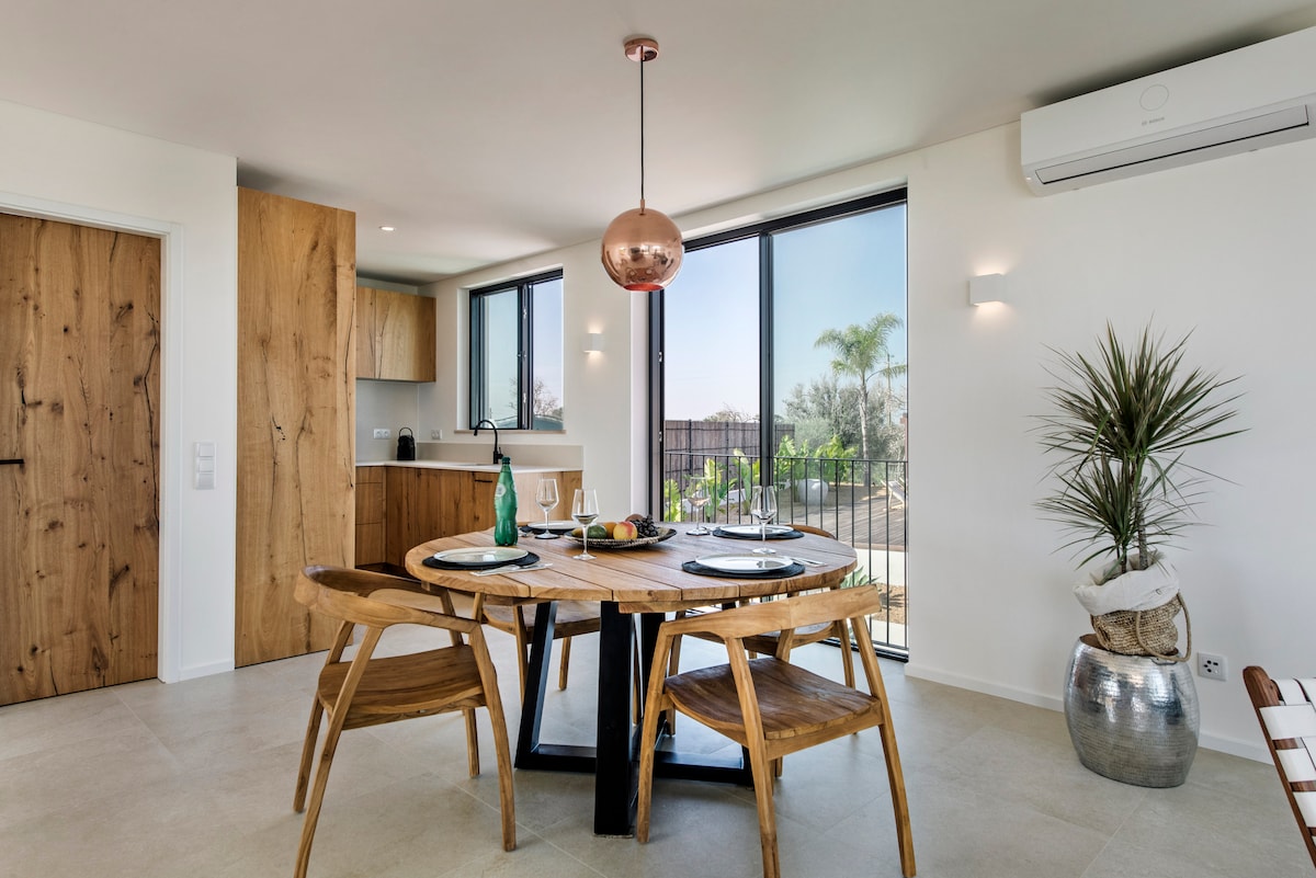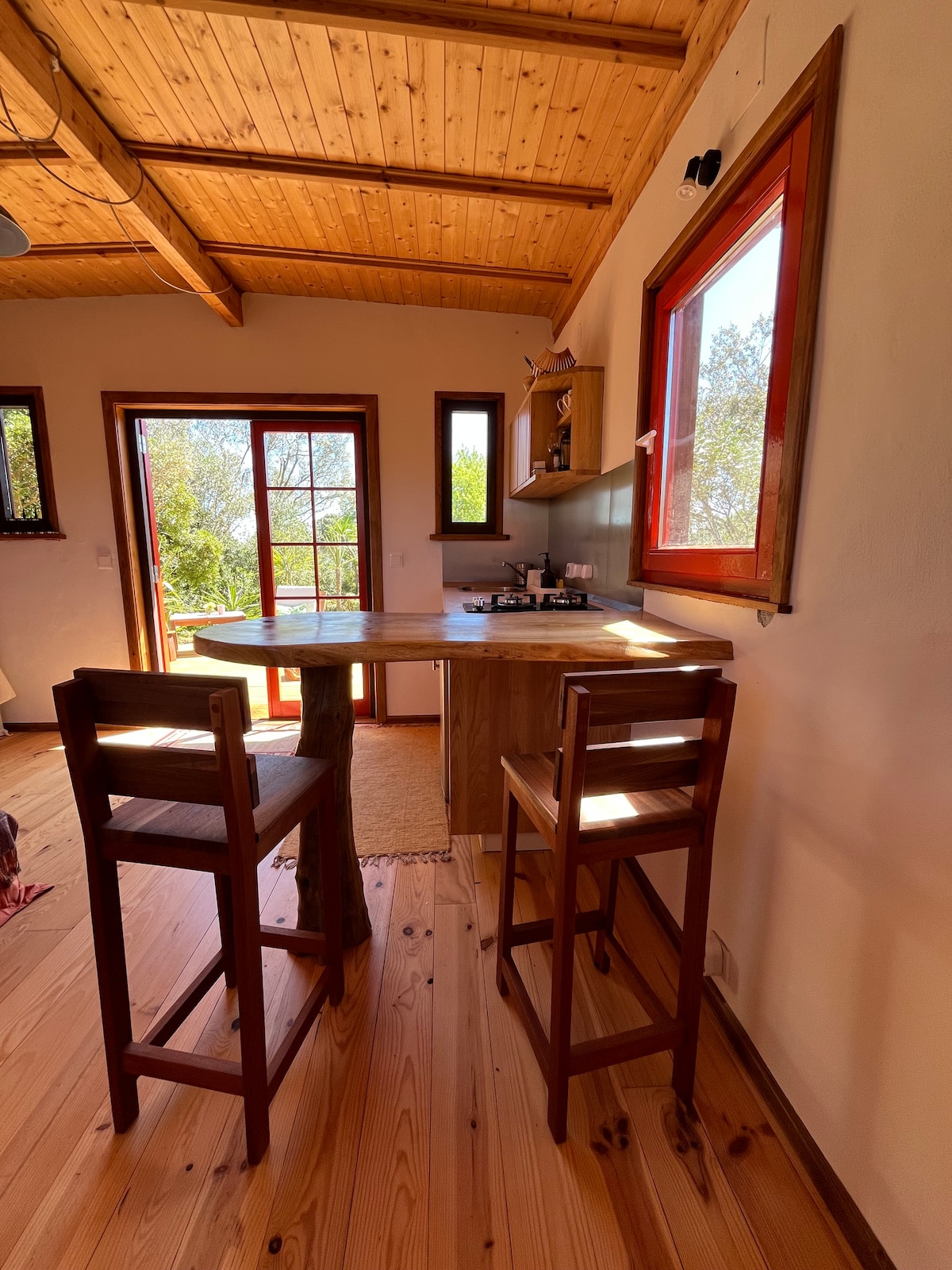 The two wooden houses, are set in a tranquil cork and eucalyptus environment. You´ll be rewarded by green grounds. The air is beautifully scented by the trees. As soon as you arrive, “the final 600 meters are on an unpaved road, typical for the Algarve countryside,easily accessible with a regular car and part of the boho, slow-living experience” you can go for a swim in the azure pool or read a book on your terrace. As serene as you could hope to find, yet an easy drive from wonderfull beaches.