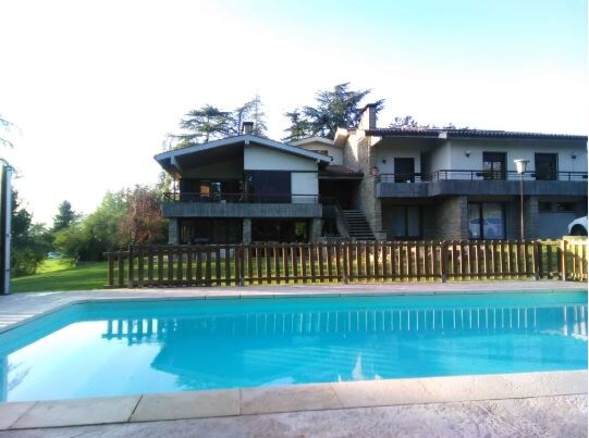 Дерев 'яне шале 150м2, на ділянці 2000м2 в оточенні лісів. Дерев' яний будинок, побудований у 2007 році, з двома поверхами та повністю обладнаним гаражем на два автомобілі. Великолепні краєвиди на Піренеї. Великий герметичний камін у вітальні, відкритий для обох поверхів. Розташований посеред лісу, з великими деревами, зоною для барбекю, гамаками, дитячим дерев 'яним будинком, покритою терасою та великими ігровими майданчиками з газоном. Ідеально підходить для любителів сім' ї та природи.