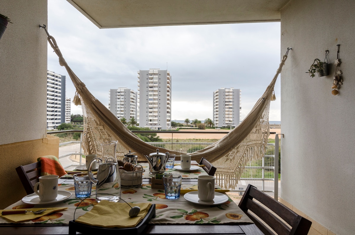 Наша класна та зручна квартира була нещодавно відремонтована, щоб забезпечити ваш найкращий сімейний пляжний відпочинок. Має просторий і сонячний балкон з відкритим видом, ідеально підходить для післяобіднього напою. Загальні зони включають басейн для дорослих та дітей, дитячий майданчик, тенісні корти та достатньо місця для бігу та гри. Всього в 10 метрах ходьби від пристані та її ресторанів, в 20 метрах від пляжу, з легким доступом до чудового центру Лагосу, поля для гольфу та пляжі з найкращими серфінговими хвилями Португалії.