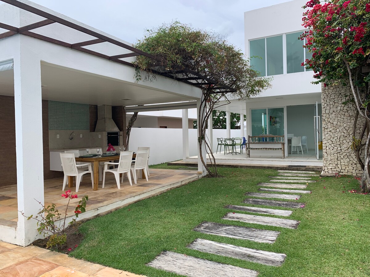 Пляжний будинок, сімейна атмосфера, закрита територія, весна та провітрювана територія, спальні з кондиціонером, два балкони, ванна кімната на першому поверсі та перший поверх з душовою кабіною та електричним душем, гараж, вся керамічна зона заднього двору з душем, кондомініум за 100 метрів від пляжу. Усе кухонне приладдя, двоспальне ліжко та односпальне ліжко в кожній спальні.