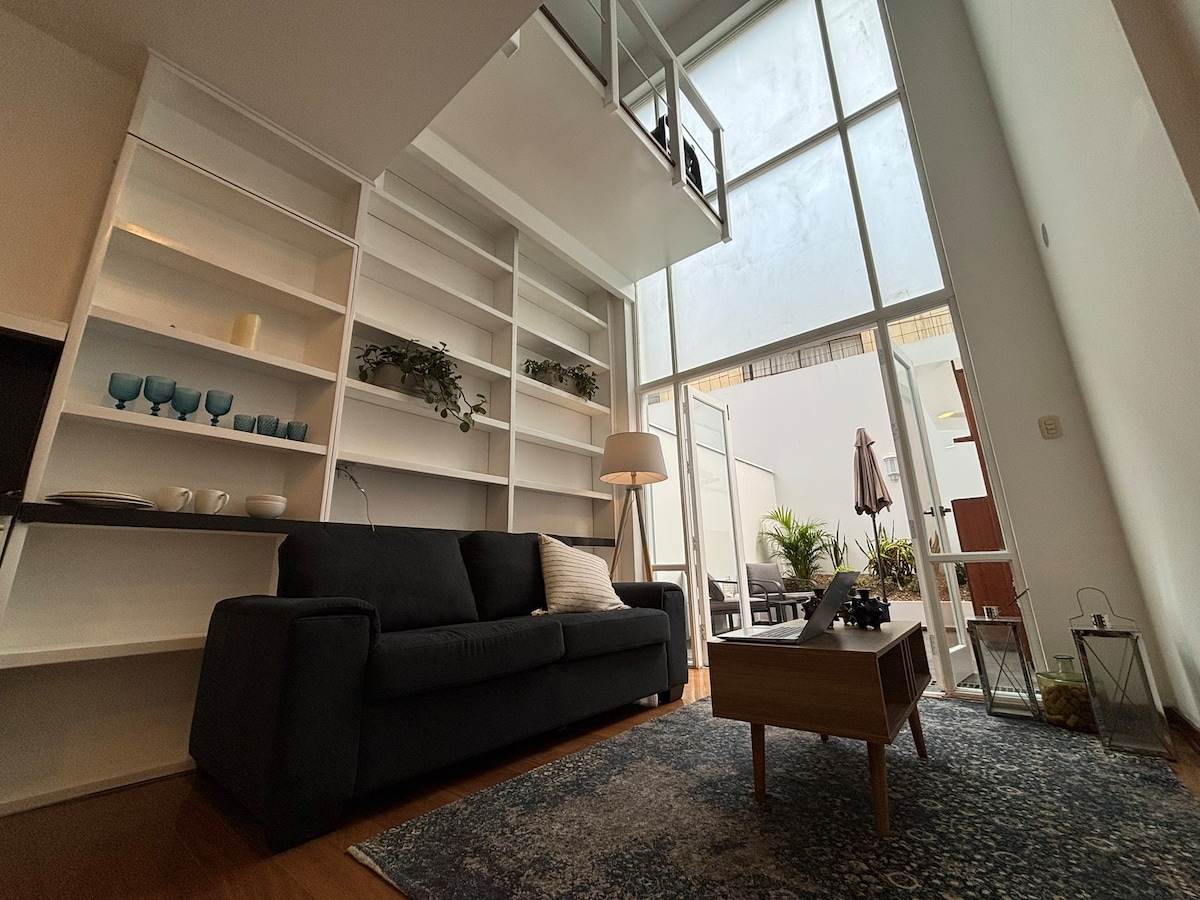 Enjoy the privacy of this cozy apartment with independent access in a 5-story building in Barranco. Surrounded by lush trees, traditional houses, parks, museums, and cultural centers. At the local market, you can enjoy cheeses, hams, fruits, and typical food at very affordable prices. Just three blocks away, the Malecón invites you to enjoy peaceful walks, sea breeze, and memorable sunsets. Ideal for those who wish to stay in a district rich in culture and history.