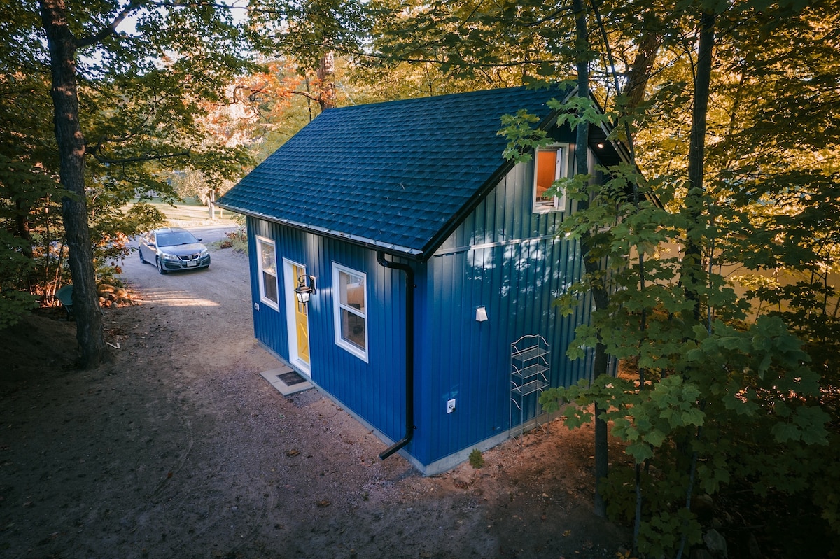 Ця мікрохолостяцька кабіна розташована позаду готелю Lakeside Inn. Готель розташований перед озером Сімко, а салон розташований позаду основного готелю. Ви в 30 секундах ходьби до озера. C1 - це приватна квартира в кабіні, яка має дві квартири поруч. Простір у стилі студії оснащений ліжком королеви та розумним телевізором. У квартирі є ванна кімната з душем і міні-кухнею, яка складається з міні-холодильника, мікрохвильової піч, кавоварки, чайника, столу та стільців.