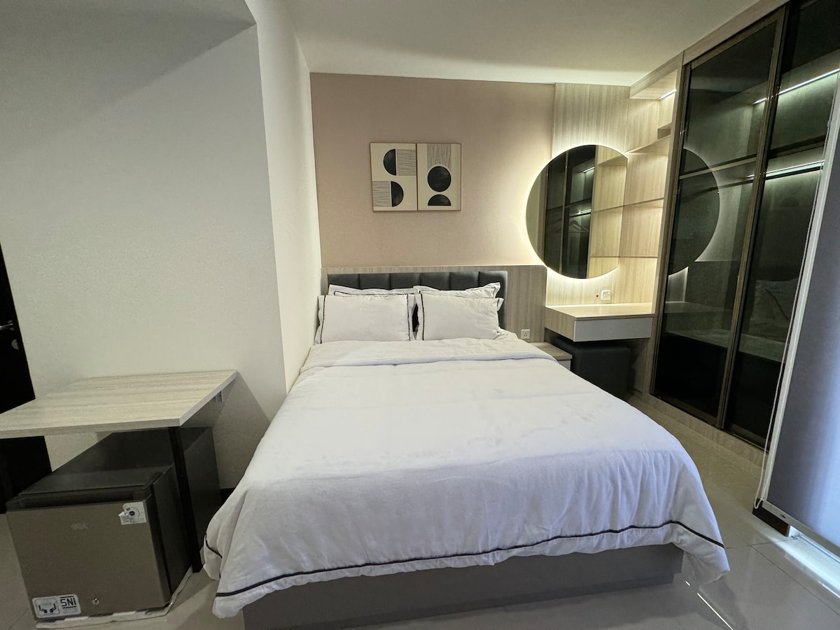 Відпочиньте і відпочиньте в цьому спокійному, стильному помешканні з кондиціонером і найкращим видом на гавань на найвищому поверсі вежі. У помешканні є басейн і тренажерний зал, розташований у тій салоні. У квартирі-студії є простора спальня зі світлодіодним смарт-телевізором, кухнею з мікрохвильовою піччю, ванною кімнатою з обігрівачем для зберігання, туалетним столиком з феном. У межах закладу розташований торговий центр з закусочними, парикмахерською, пральнею, баром і цілодобовим магазином.