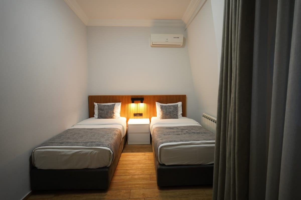 Welcome to Blue Escape – a calm, hotel-style room with balcony and access to a newly built shared drop pool surrounded by nature. Designed in soft blue tones, it’s perfect for solo travelers or couples seeking peace and comfort. Enjoy the fresh air, relax in a cozy bed, and stay connected with Wi-Fi and smart TV. While there’s no kitchen, great cafés are nearby. A quiet retreat just minutes from Batumi’s center.