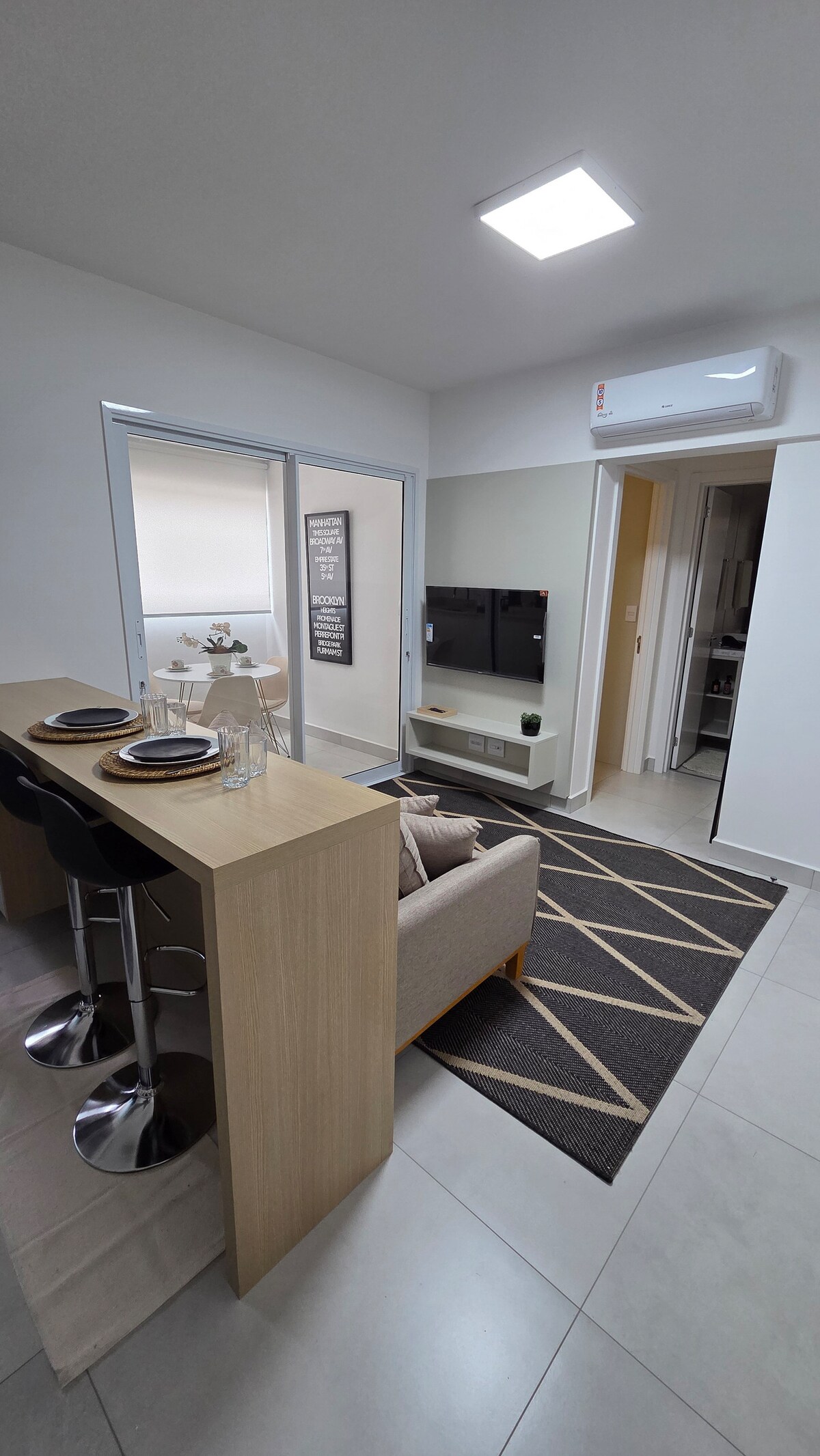 Нова квартира. У ньому є кондиціонер у всіх кімнатах і офіс у вітальні. Завдяки нещодавно доставленому та повному кондомініуму (гараж, басейн з підігрівом, фітнес-центр, ринок, коворкінг, пральня, ігровий паб...) Розташований на одному з головних проспектів, перед повітряним клубом, в 2 кварталах від магазинів bauru, недалеко від аптеки, ринку, ресторанів та заправки. Короткий досвід у цій красивій і дуже добре розташованій квартирі. Слідкуйте за нами на Insta @flybauru