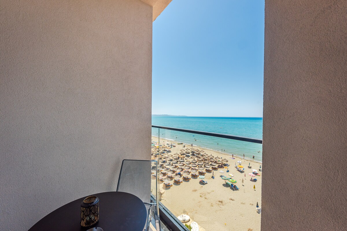 Прокиньтеся біля моря! Цей світлий, сучасний люкс розташований у самому центрі набережної, за кілька кроків від піску, і оточений кафе, барами та ресторанами. Насолоджуйтеся всім необхідним для комфортного перебування: - Гідромасажна ванна в номері для відпочинку, як у спа-салоні - Балкон із відкритим видом на море (ідеально підходить для кави під час сходу сонця або вина під час заходу сонця) - Швидкісний Wi-Fi, Smart TV та самостійне прибуття за допомогою смарт-замка - Кондиціонер і зручне ліжко (можна розмістити до 3 гостей)