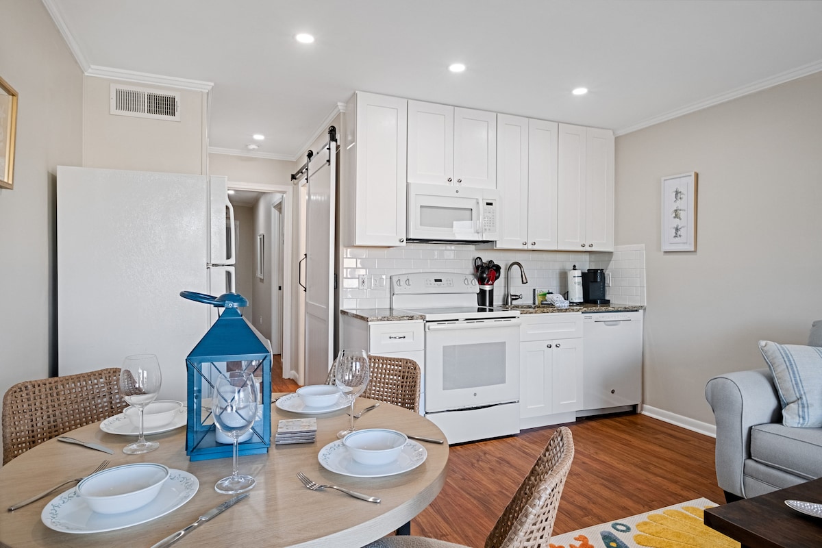Сніданок, продукти, пляжний візок, намет, ковдра, 6 пляжних рушників/стільців, теніс та піклбол безкоштовно! Насолоджуйтеся пляжем і розкішшю в цьому прекрасному нещодавно відремонтованому кондомініумі 1BR/1BA. Хоча вся сім 'я відпочиває в кондомініумі, відкриваючи вид на океан із вітальні, кухонного бару та балкона. Або відчиніть двері балкона та відчуйте океанський бриз, а пляжні зручності, які ми пропонуємо, не мають собі рівних у будь-якому помешканні 1BR/1BA на Хілтон-Хед!