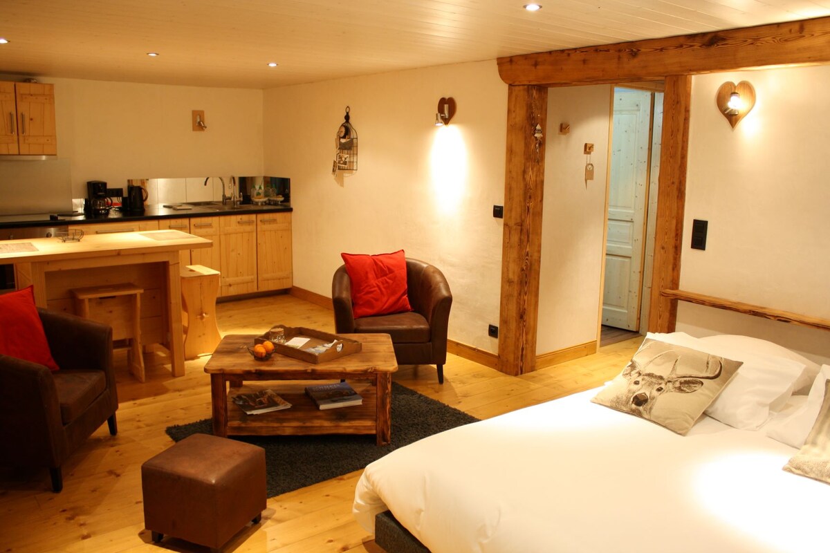 Додайте колоди до каміну з масивним кам 'яним очагом і відпочиньте на сільському дерев' яному дивані. Подивіться на вікна з картинками в альпійському лісі навколо автентичного шале. Повернутися зі схилів і розслабитися в розкішній сауні в шикарній ванній кімнаті. Спальня площею 25 м2 з двоспальним ліжком, сховищем, автентичним гардеробом. Тепла та простора вітальня з двома вікнами з видом на гору Блан та камін. І диван-кровать, який можна розкладати на 2 односпальні ліжка. Зручна та повністю обладнана кухня. Гранітна ванна кімната з душем і сауною для 3 осіб. Тераса перед лісом і струмком ( з частим відвідуванням оленів - дивіться фотографії ), з фонтаном і захоплюючим видом на масив Масив Маунт Блан. Шале - це індивідуальне помешкання, повністю доступне та зарезервоване для гостей. Як і тераса та околиці ( невелика річка, приватний міст і вихід до лісу ). Доступний у разі виникнення будь-яких запитань. У селищі Купеу: справжнє шале в лісі над бухтами з винятковим видом на масив Монблан. На краю маленького торрент із оленями 5 хвилин на машині від Ле-Уша, 10 хвилин від Шамоні, 1 година від Женеви. Легкий доступ по дорозі до шале. 2 км від Ле-Уш і 10 км від Шамоні. Парковка безпосередньо за шале Повністю відремонтоване старе шале. З усім сучасним комфортом (у сауні на 3 персони) та найвищим декором. Унікальний вид на ланцюг Монблан. Шале знаходиться в селищі Купеау, в лісі над Ле-Ушем, з винятковим видом на Монблан. За 5 хвилин можна доїхати до Ле-Уш, за 10 хвилин - до Шамоні та за годину до Женеви.