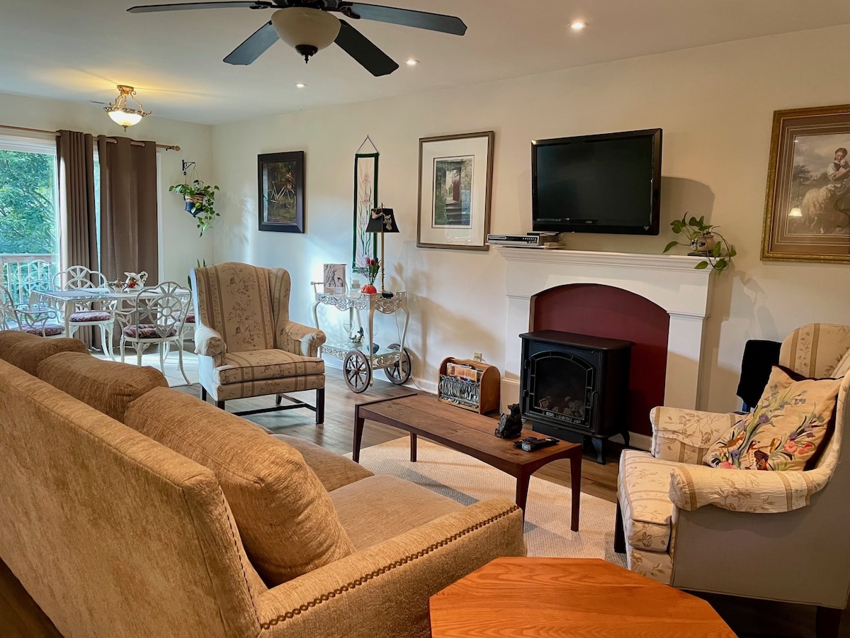 Комфортне помешкання в декількох хвилинах ходьби від історичного центру Західного Джефферсона. Насолоджуйтеся всім, що може запропонувати місто, не потрапляючи до свого автомобіля. 2 спальні з ліжками queen-size і 2 ванні кімнати з туалетом. Безліч місць для паркування. Повні зручності, Wi-Fi, смарт-телевізор (транслюйте підписки, переглядайте телевізор Plus або Netflix), Keurig, кухонне приладдя. Забороняється перебування з домашніми тваринами, куріння та вейпінг заборонені Є зовнішні камери. Можливе раннє прибуття або пізній виїзд, будь ласка, спочатку запитайте.