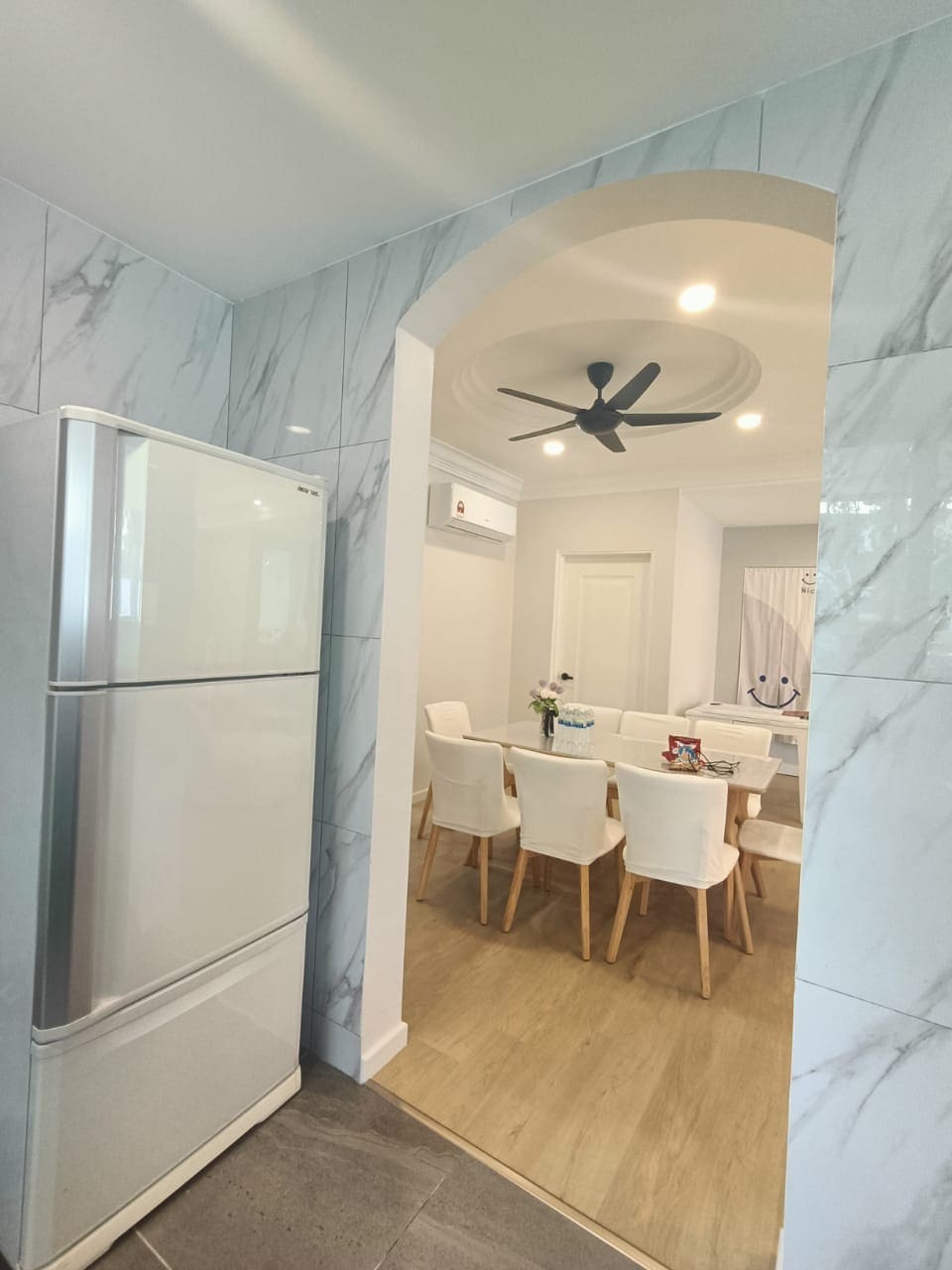 Район міста, Джохор-Бару - Одноповерхова тераса на кутовій ділянці - Повністю мебльоване помешкання. - Підходить для зустрічей з друзями та родиною або для весіль. - 4 просторі спальні з кондиціонером та спільною ванною кімнатою - Камера відеоспостереження 24/7 Вітальня - телевізор Smart TV + пульт дистанційного керування; - Необмежений Wi-Fi. - Диван + караоке-система Кухня - Холодильник, асортимент, обідній стіл та стільці. - Надається посуд для їжі та приготування їжі (очищувач води, індукційна плита, мікрохвильова піч, сковорідка, каструля, кружки...) Спальня - 4 спальні