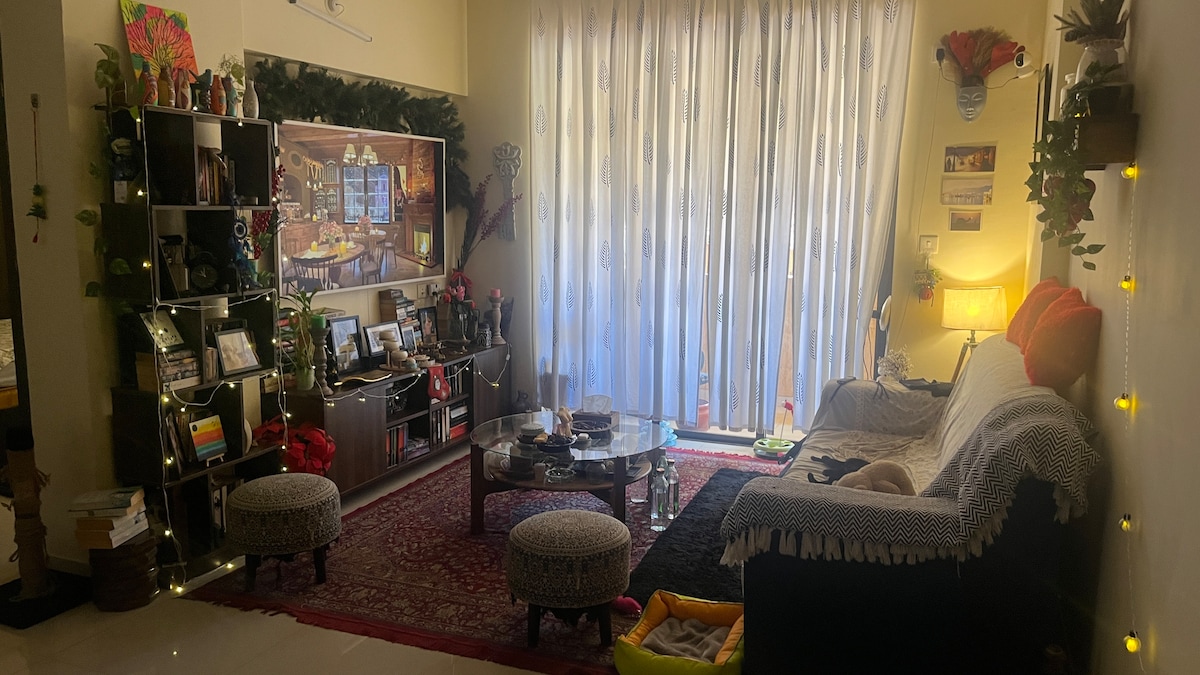 Помешкання Muktangan пропонує вам 1 спальню з кондиціонером, ліжком розміру «king-size» та суміжною ванною кімнатою з туалетом. Простора кухня, їдальня та вітальня. Залізнична станція, аеропорт, станція ST знаходяться дуже близько від цього місця. Храм Махалаксмі знаходиться всього в 5 хвилинах ходьби. Ми пропонуємо безкоштовні чай, каву, півлітрову пляшку молока під час реєстрації. Зверніть увагу, що цей пакет цін призначений для 4 гостей. Після цього 450 рупій + збори Airbnb та додатковий податок на особу (максимум 7 осіб).