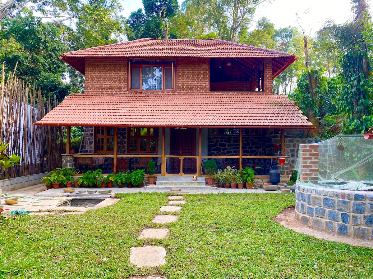 Відчуйте спокій у нашому помешканні біля табору слонів Дубаре. Ми пропонуємо безкоштовний високошвидкісний Wi-Fi, затишні номери, паркувальне місце та спокійний простір, ідеальний для роботи або відпочинку, в оточенні пишних кавових плантацій та зелені. Насолоджуйтеся свіжозвареною кавою з фермерським коров’ячим молоком. Досліджуйте мальовничі стежки та річки Курга або працюйте на природі. Справжня домашня їжа, приватний незалежний простір і тепло житла з нашою родиною – відчуйте себе місцевим жителем Курга.