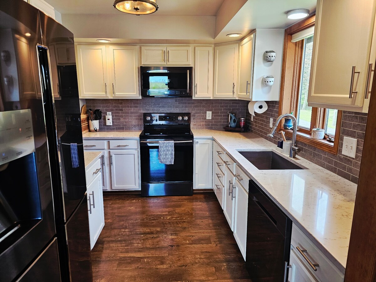 Розслабтеся та розслабтеся або відвідайте всі пам 'ятки Західного Нью-Йорка, не виходячи з цього сімейного заміського будинку з 2 спальнями. Розташований в 3 милях від центру Черчвілла, ви будете оточені фермерськими полями та деревами в цьому спокійному заміському просторі. Патіо - чудове місце для вечері на відкритому повітрі, сидіння з ранковою кавою або вогнища. Наша кухня повністю обладнана для задоволення ваших потреб у приготуванні їжі.