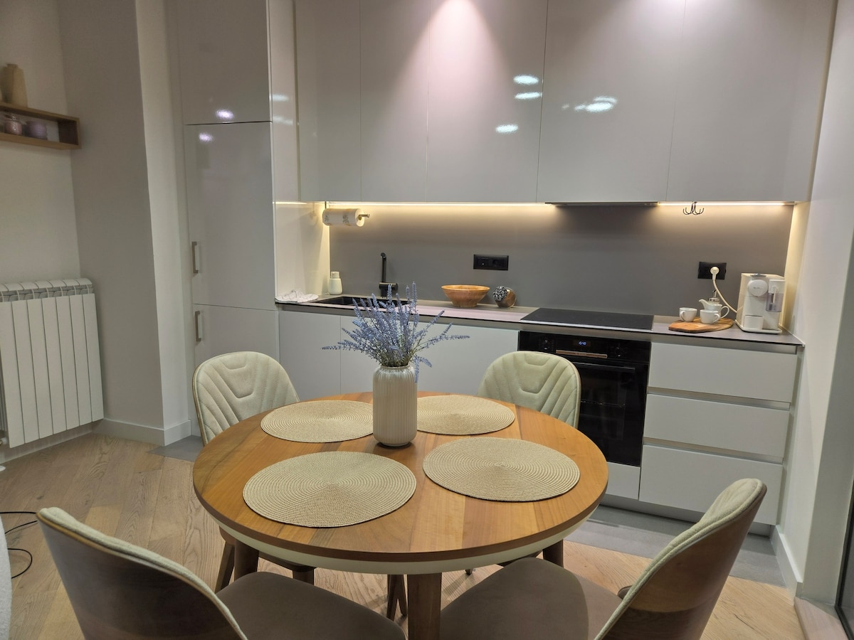 Сучасна, повністю відремонтована квартира в Новому Белграді; лише в кількох хвилинах ходьби від Сава-центру та Белградської арени. Розташована на 1-му поверсі в тихому житловому районі з легким доступом до шосе та центру міста. Насолоджуйтеся самостійним заселенням, зручним ліжком розміру king-size, повністю обладнаною кухнею та ванною кімнатою, швидким безкоштовним Wi-Fi та телевізором UHD Smart TV. Створено для комфорту та зручності. Пізнє виїзд доступне за додаткову плату, залежно від наявності.