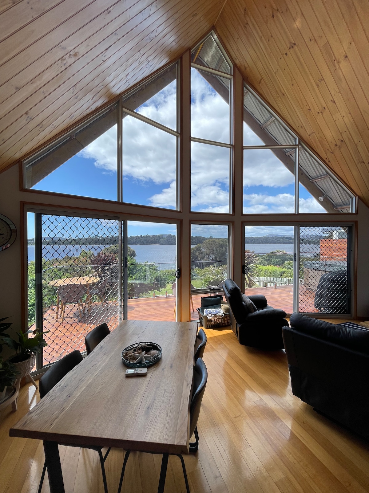 Розташоване на красивій частині річки Тамар посеред виноробного регіону Північної Тасманії в 30 хвилинах від міста Лонсестон . Це сучасне скляне та сталеве двоповерховий відпочинок прямо на краю води. Чудове місце для відпочинку .