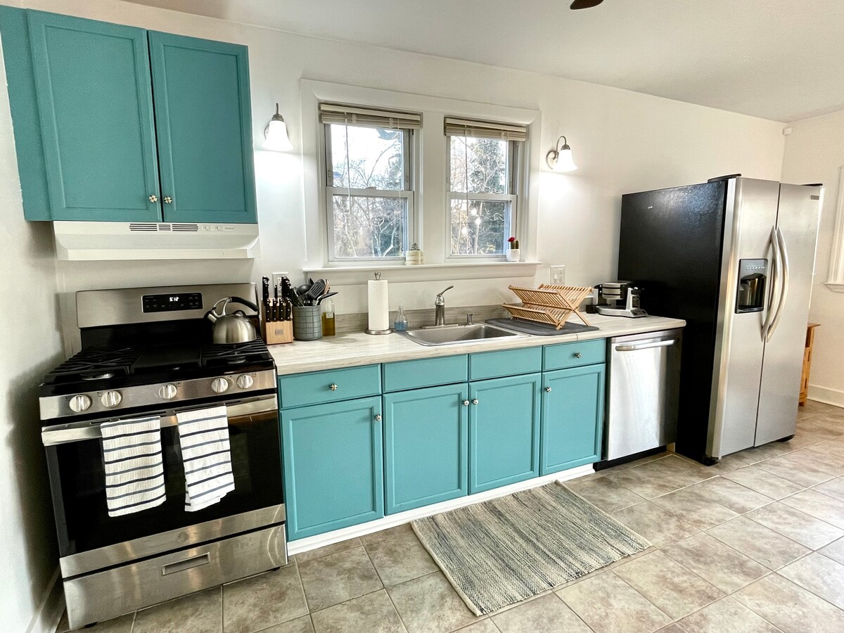 Relax and Enjoy beautiful Asbury Park in this 500 sqft open concept, modern studio apartment located in NW Asbury 1.5 miles from the beach. Enjoy a fully stocked kitchen, dishwasher & wine fridge. FAST Wi-Fi & 65” smart TV. Polished concrete floors, separate work area for working remotely, Queen sized bed and large size couch complete the space. This is a quiet (!) studio apartment in a multi-family home with a shared backyard. Early Check-ins and late check outs based on avail at $10/ hr